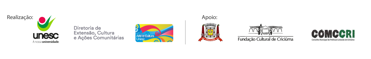 O Projeto Quintas Culturais foi contemplado pelo Edital da Fundação Cultural de Criciúma n° 002/2020 – Edital de Projetos de Emergência Cultural Aldir Blanc (Lei nº 14.017/2020). As apresentações culturais acontecerão no período de 18 de março de 2021 a 08 de abril de 2021, no Palco do Quintas Culturais (Bloco P), sendo transmitido pelo INSTAGRAM @culturaunesc, das 18h às 19h20.