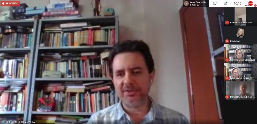 O professor Dimas de Oliveira Estevam, professor e coordenador adjunto do PPGDS, agradeceu a professora pela esclarecedora exposição e comentou da importância do debate devido às desinformações que circulam nos meios de comunicações e nas mídias sociais. Para Dimas, apesar de vivermos na sociedade da informação, vivemos desinformados porque não temos acesso às informações, mas sim às narrativas das informações. “Os