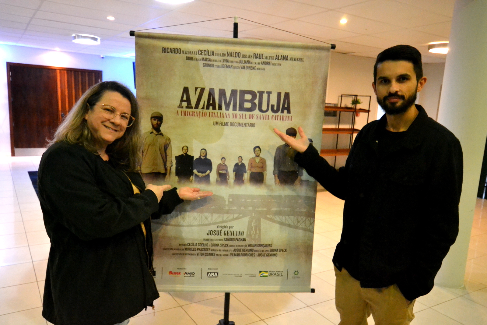 O espaço multiuso da Universidade, constantemente usado para palestras, formaturas, eventos e apresentações artísticas se transformou em uma sala de cinema, na noite desta quinta-feira (09/06). O auditório Ruy Hulse foi o local escolhido pelos idealizadores, para ser o palco da primeira exibição em Criciúma do filme documentário “AZAMBUZA - A Imigração Italiana no Sul de Santa Catarina”.