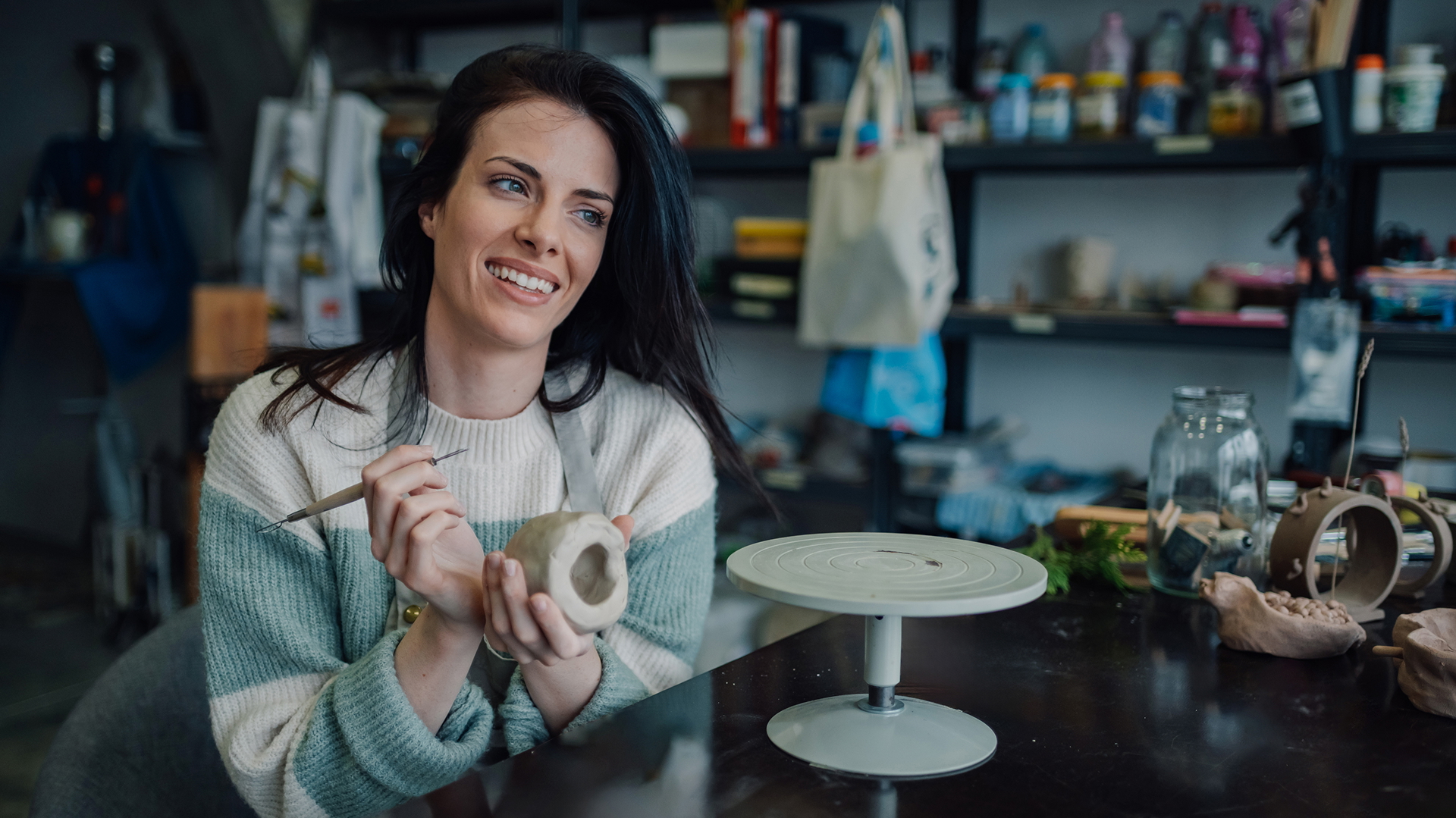 Desenvolvimento de padrões e aplicações em cerâmica e objetos.