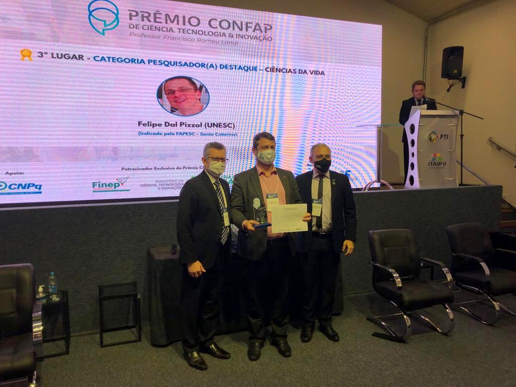 O professor Felipe Dal Pizzol, do Programa de Pós-Graduação em Ciências da Saúde (PPGSC) da Unesc, foi um dos três pesquisadores destacados em todo o Brasil no Prêmio Confap de Ciência, Tecnologia & Inovação/Prêmio Professor Francisco Romeu Landi, cuja final foi realizada nesta quinta-feira (9/12), em evento em Foz do Iguaçu, no Paraná.