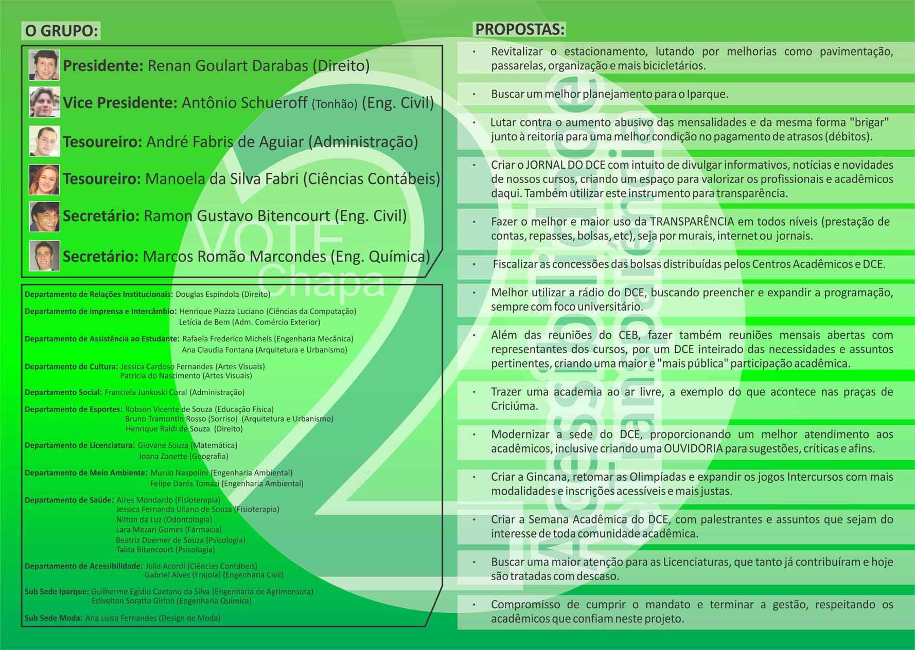 Confira os integrantes e as propostas da Chapa 2