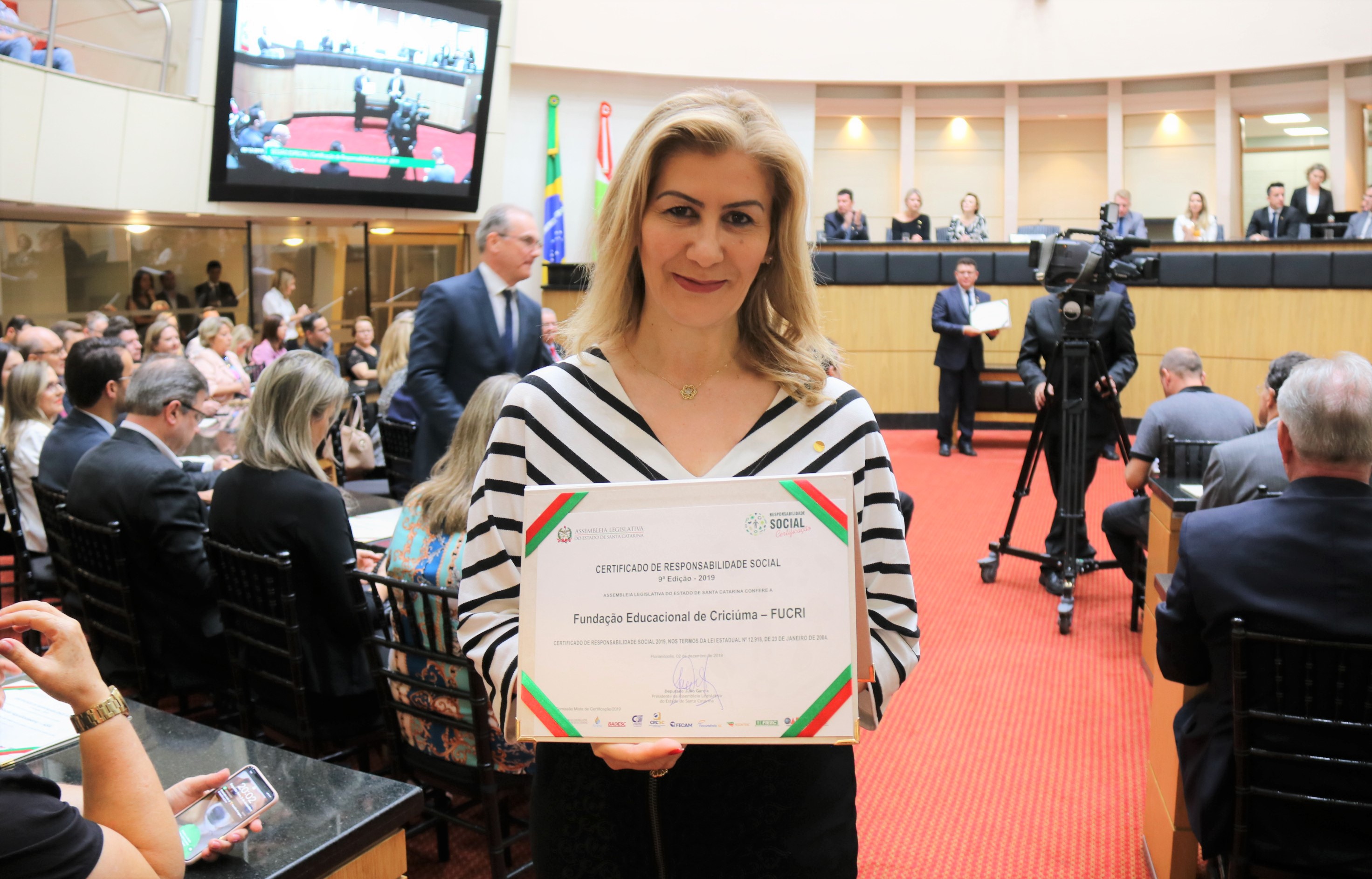 Para a reitora da Unesc, Luciane Bisognin Ceretta, que recebeu pessoalmente a certificação e o troféu das mãos do deputado Rodrigo Minotto, o momento é de recompensa pelo trabalho coletivo realizado na Universidade. “Tivemos uma grata surpresa nesta noite. Estar entre os finalistas e receber a certificação por si só já era uma alegria, mas receber o troféu foi ainda mais satisfatório pela possibilidade de levar essa conquista para a nossa Universidade. Esse resultado é fruto de um empenho incessante e nos motiva a ir ainda mais além em tudo o que diz respeito à responsabilidade social”, apontou.