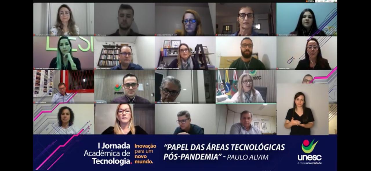 Sob os olhares de mais de dois mil espectadores foi aberta, na noite desta segunda-feira (20/7), a primeira edição da Jornada Acadêmica de Tecnologia da Unesc. Essa foi a primeira atividade da semana, que seguirá com extensa programação voltada aos acadêmicos dos cursos de engenharia e tecnologia, assim como à comunidade externa. Para abrir as conferências virtuais que marcarão o evento o convidado foi o Secretário de Empreendedorismo e Inovação do Ministério de Ciência e Tecnologia, Paulo Alvim.