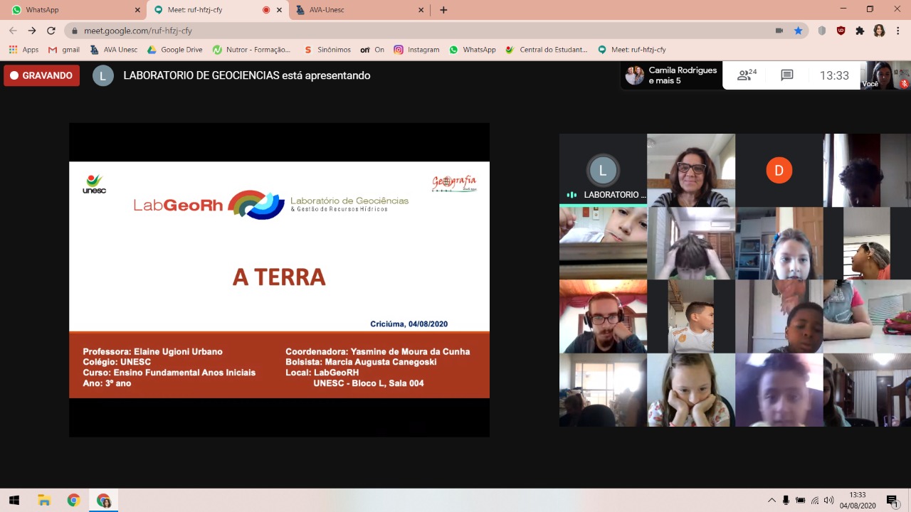 A terça-feira (4/8) foi um dia de descobertas em uma aula especial para as crianças do 3º ano do Colégio Unesc. Os alunos aprenderam sobre o planeta Terra no evento intitulado “A Terra é Redonda?”, conduzido pela professora do curso de Geografia da Universidade, Yasmine de Moura da Cunha, integrante do LabGeoRH (Laboratório de Geociências e Gestão de Recursos Hídricos).