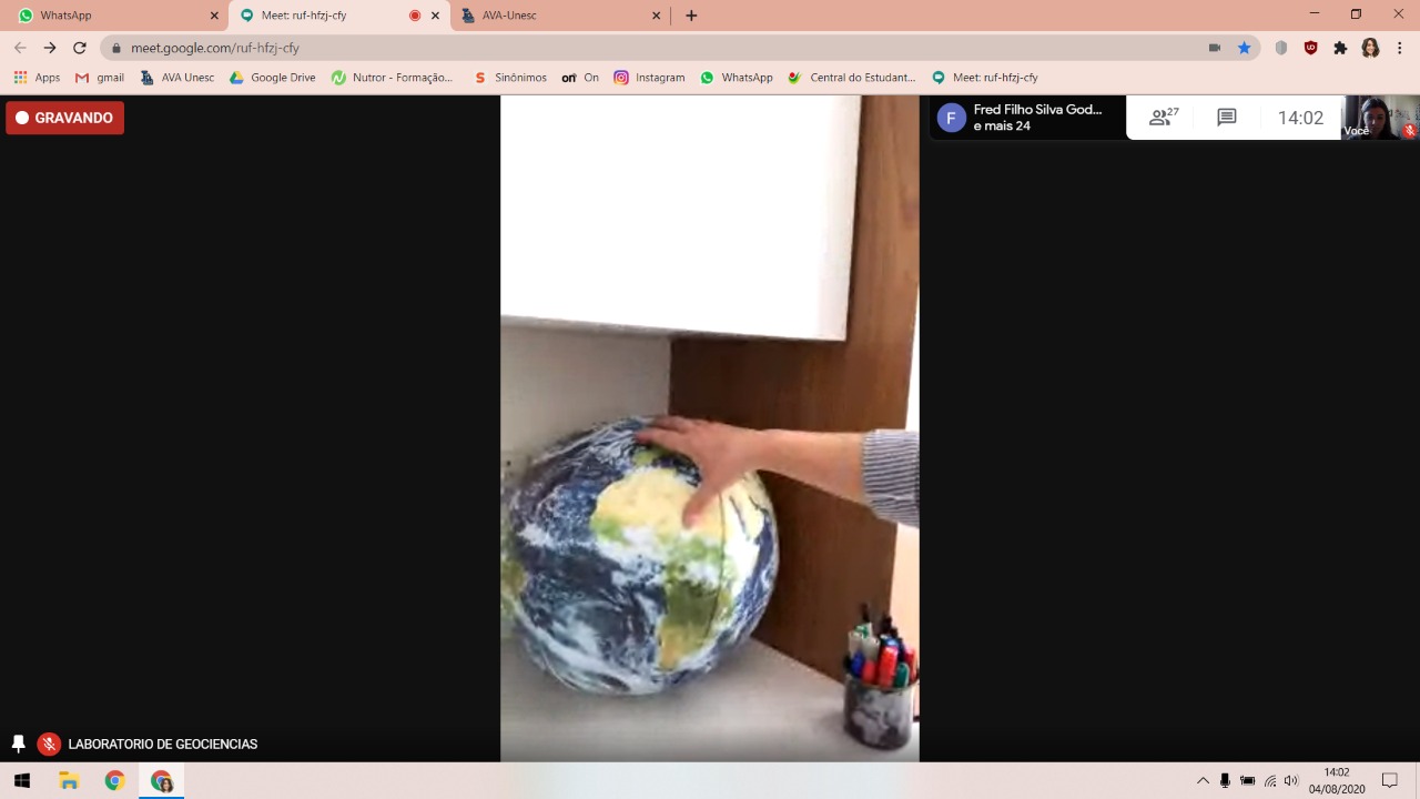 Em sua apresentação, a geóloga preparou um conteúdo para esclarecer desde o predomínio da água no mundo até a atmosfera terrestre e seu formato. “Esse assunto tem sido muito discutido por um grupo de pessoas que acredita que ela é achatada. Porém, sabemos que este aspecto tem uma impossibilidade grande e comprovações do contrário de tantas maneiras”, explica a professora, que também trouxe para aula materiais visuais sobre o formato do planeta, como mapas, globos e imagens de satélites.