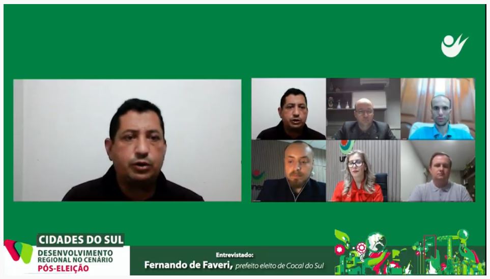 O primeiro a participar do encontro mediado pela reitora da Unesc, Luciane Bisognin Ceretta, foi o prefeito eleito de Cocal do Sul, Fernando de Faveri. Fernando esteve ao vivo no debate que contou ainda com a participação reitor do Unibave, Guilherme Valente, e de convidados da Unesc.