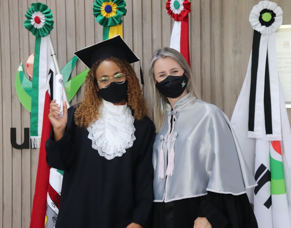 A pró-reitora de Planejamento e Desenvolvimento Institucional da Unesc, Gisele Coelho Lopes, presidiu a cerimônia e se disse emocionada duplamente, já que foi professora de Feldmam durante a graduação. Gisele interagiu com os familiares e amigos da graduanda e ouviu deles o quanto este momento é significativo para todos. “Sabemos o quão desafiador é atravessar o oceano para fazer a graduação. Sabemos também o quanto você poderá contribuir para o seu país, com a sua dedicação e a partir de todas as experiências que teve aqui ao longo destes quatro anos de formação. Tenha lealdade às pessoas que caminham com você e às oportunidades e se dedique a tudo que for fazer. Conquiste seu espaço e nunca deixe de ampliar seus horizontes. Desejamos para você, muito sucesso e felicidades”.