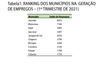 O cenário positivo na criação de empregos se repete para todo o Estado, com o Norte e o Oeste catarinense pontuando entre os principais geradores. Joinville e Blumenau foram os maiores responsáveis em Santa Catarina, com 8.455 e 7.166 respectivamente.