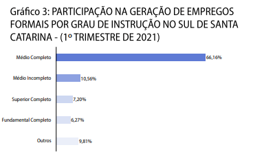 Dos novos trabalhadores formais do mercado, 66% têm Ensino Médio completo e 10,5% não concluíram a última fase escolar. Enquanto 7,2% têm diploma Ensino Superior, abaixo da média nacional de 21%.