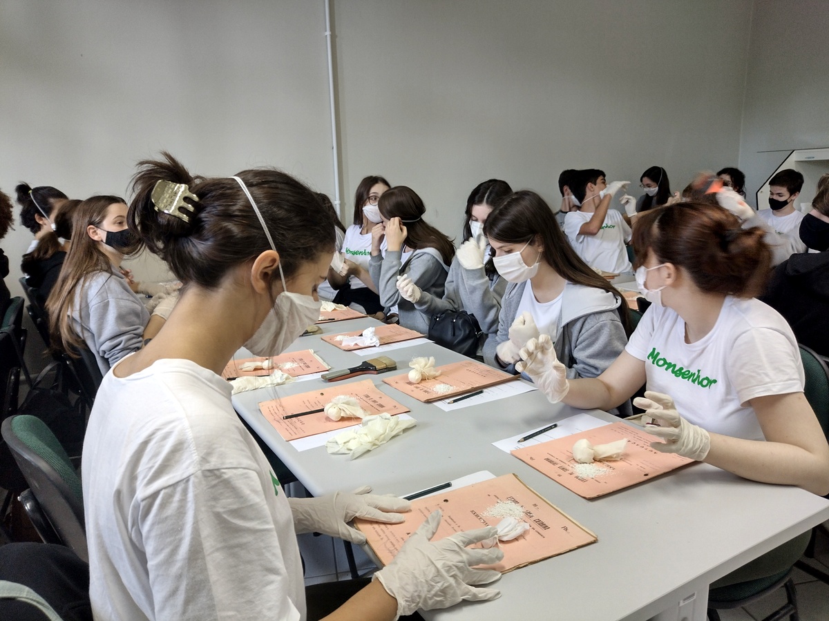 Além disso, eles tiveram a experiência de realizar uma breve higienização nos documentos, uma das etapas no processo de preservação documental.