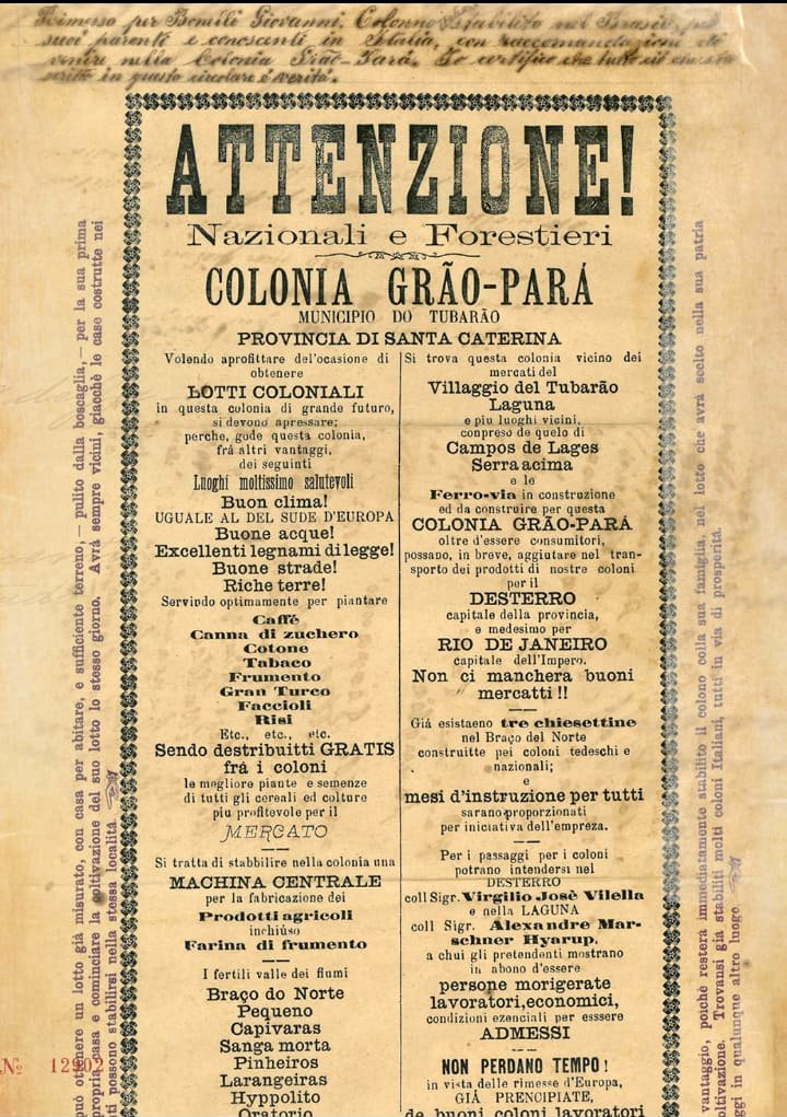 O longa-metragem, com 81 minutos, retrata a saga da imigração italiana da nossa região, que vai desde as promessas à realidade encontrada ao pisarem em solo catarinense. A produção buscou, por meio de depoimentos de historiadores mesclados a cenas gravadas com atores locais em vários sets da região, apresentar a verdadeira história da colonização, iniciada em 1877, na então Colônia Imperial de Azambuja, hoje cidade de Pedras Grandes.
