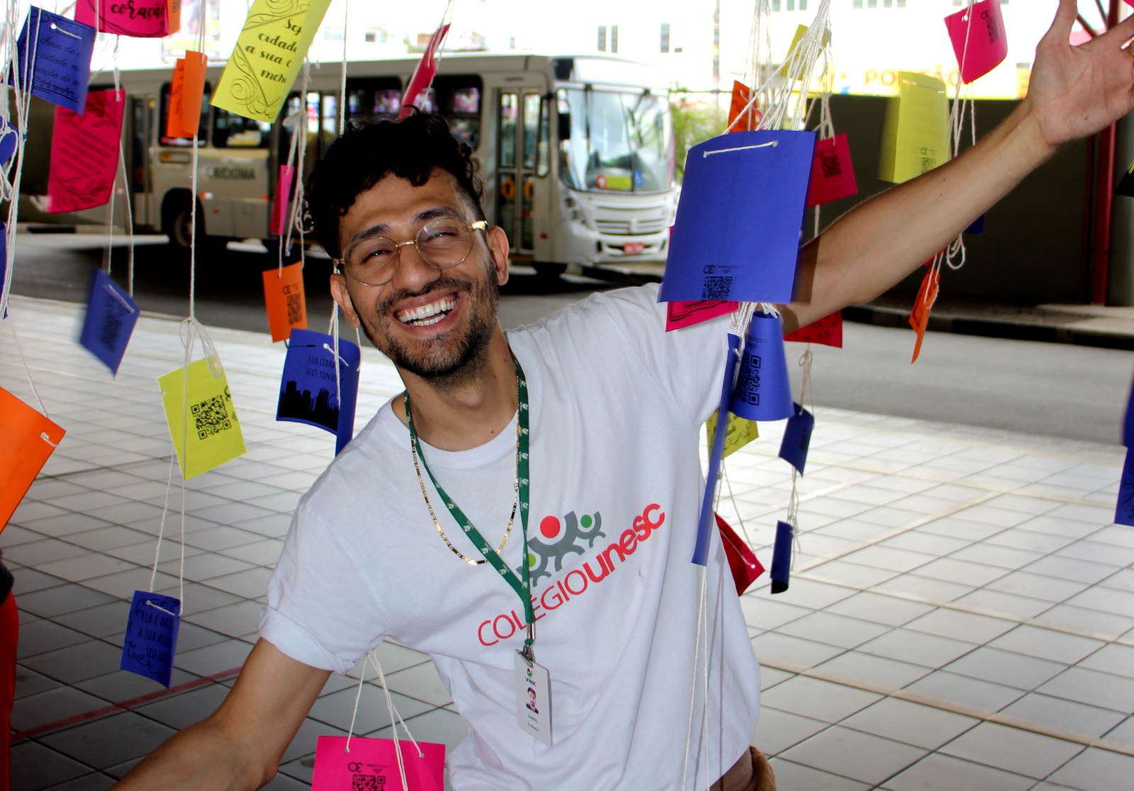 Alunos do Colégio Unesc levam arte ao Terminal Central de Ônibus de Criciúma e a Escola Básica Humberto de Campos