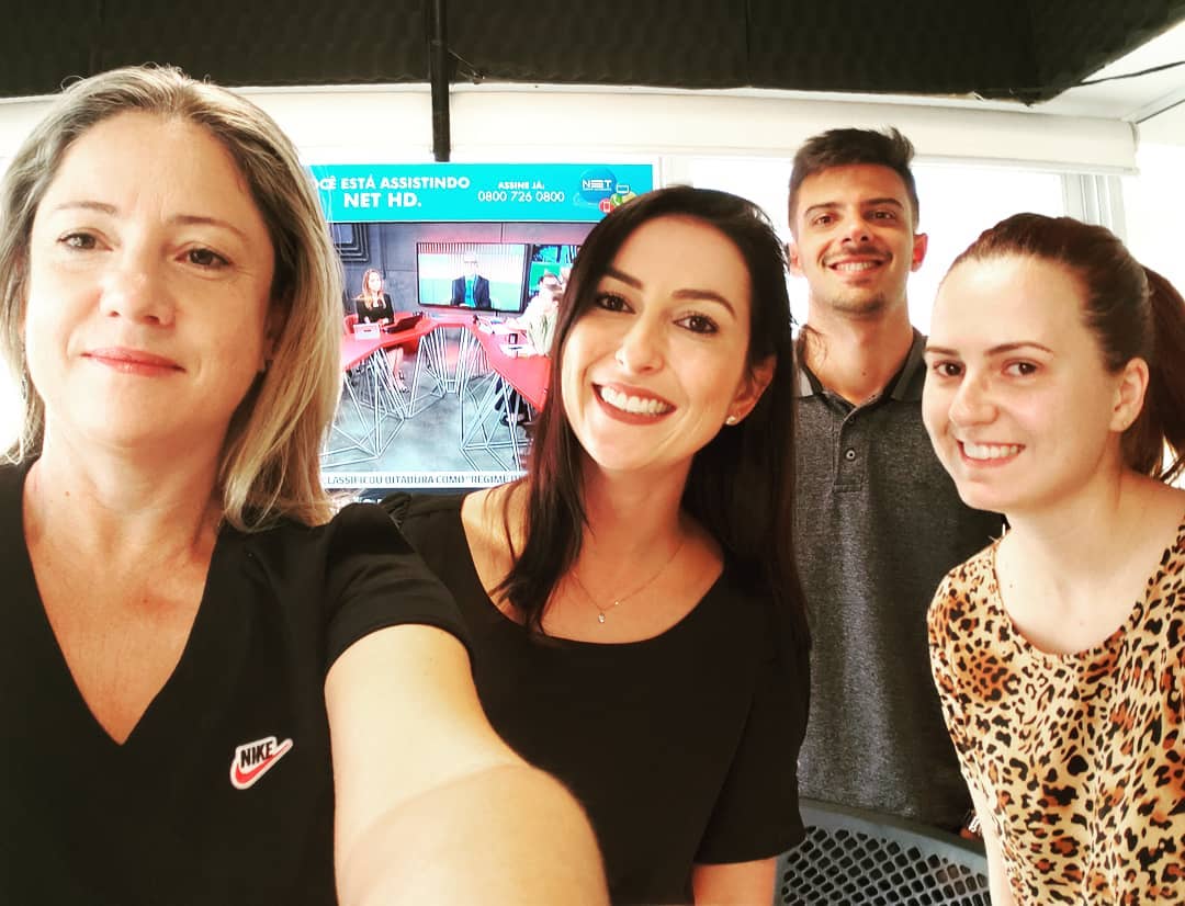 Professora Jade de Oliveira do curso de Farmácia e os mestrandos Matheus Rodigues e Mariane Matias na pauta sobre as pesquisas sobre mal de Parkinson da UNESC!