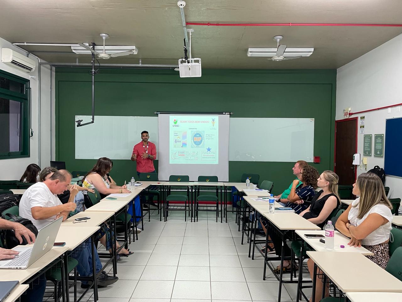 O professor Thiago apresentou aos professores do colegiado, informações referentes aos resultados do ENADE 2022 e também sobre as Diretrizes para 2025.