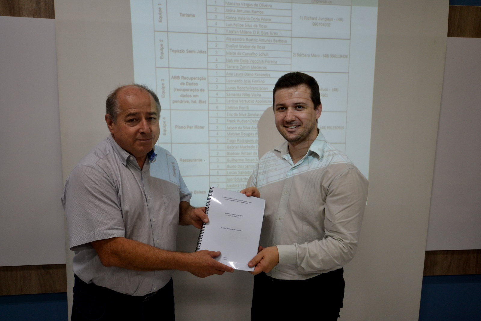 Os empresários inscritos no Núcleo de Empreendedorismo da Unesc e beneficiados com a consultoria gratuita dos acadêmicos da 8ª fase do curso de Administração de Empresas, receberam das mãos dos consultores alunos, as propostas levantadas e ações sugeridas para a boa saúde das suas empresas. A entrega do relatório ocorreu na noite desta terça-feira (06/12),na última aula do ano de Práticas de Empreendedorismo, ministrada pelo professor Ricardo Pieri. A disciplina tem como objetivo assessorar empreendedores com um plano de negócios.
