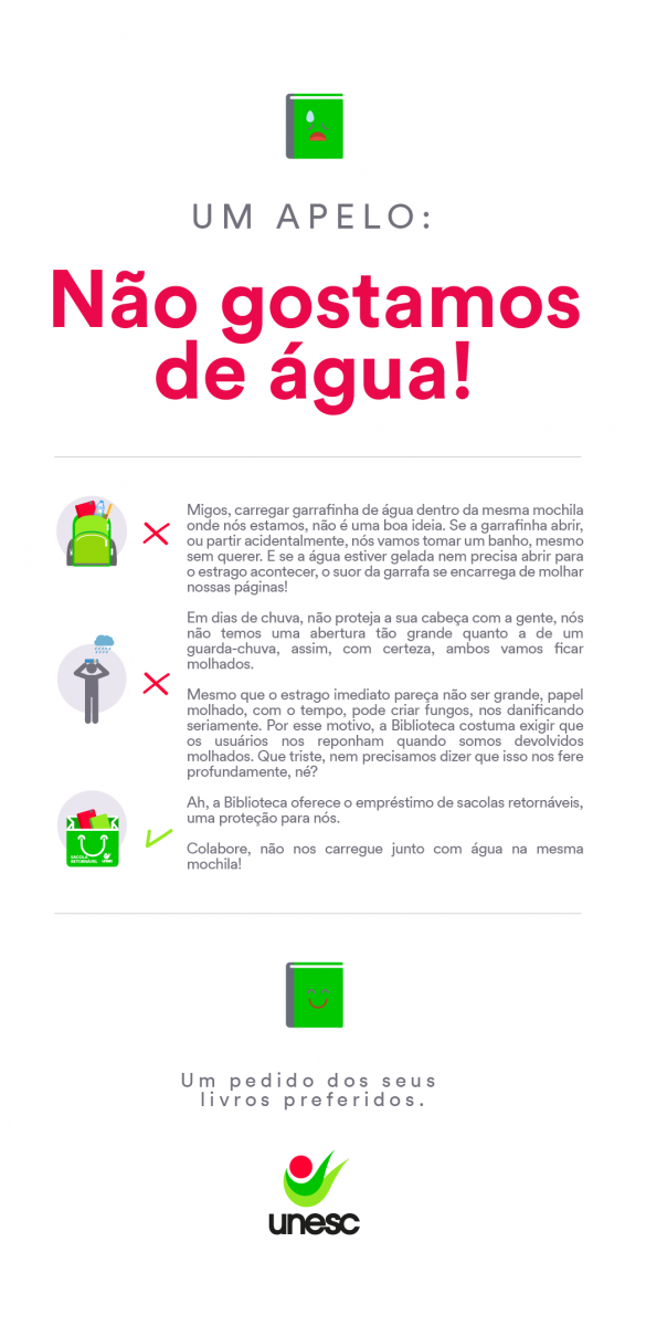 Essa medida faz parte da campanha de preservação e conservação do acervo da Biblioteca: Cuirdar dos livros é respeitar o conhecimento!