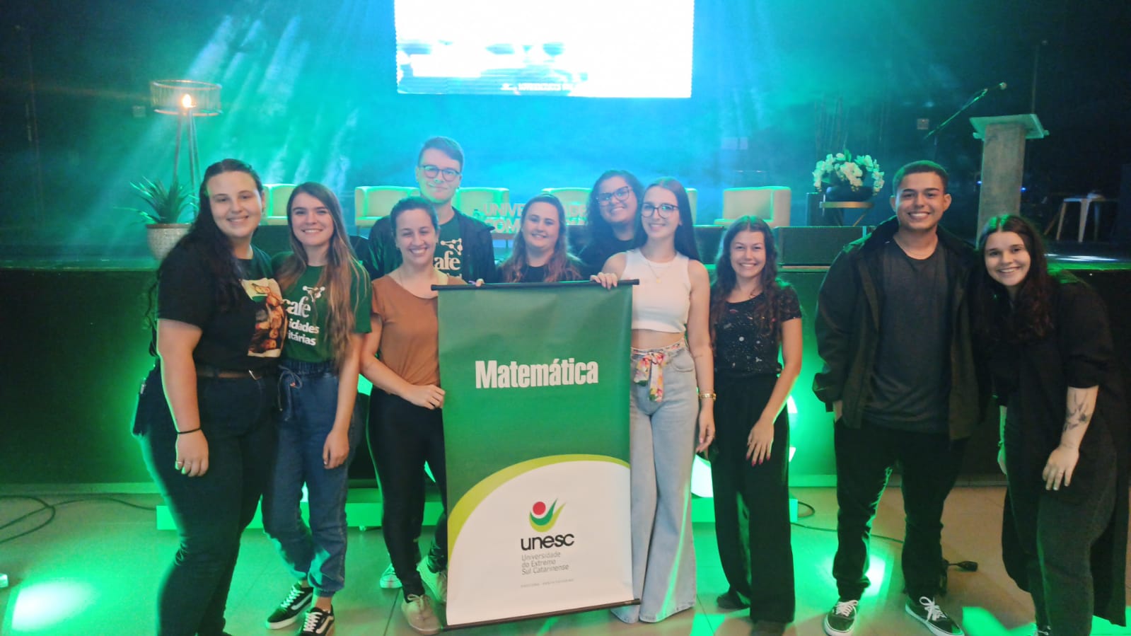 O curso de Matemática foi representado pela coordnadora Ledina Lentz Pereira, os acadêmicos Peggy Millien e Fabrícia Medeiros Nunes e a egressa Érica Sipriano.