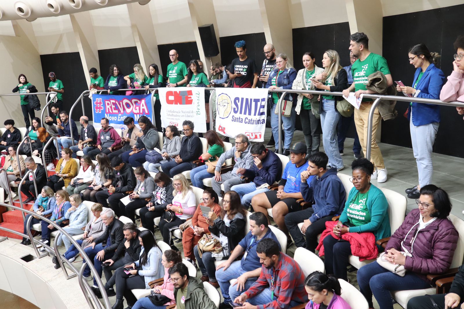Hoje 30.05.2023 acadêmicos(as) Professores(as) e coordenadores(as) e egressos das licenciaturas da Unesc, participaram da audiência pública de reestruturação da Política Nacional do Novo Ensino Médio na Alesc/Florianópolis.