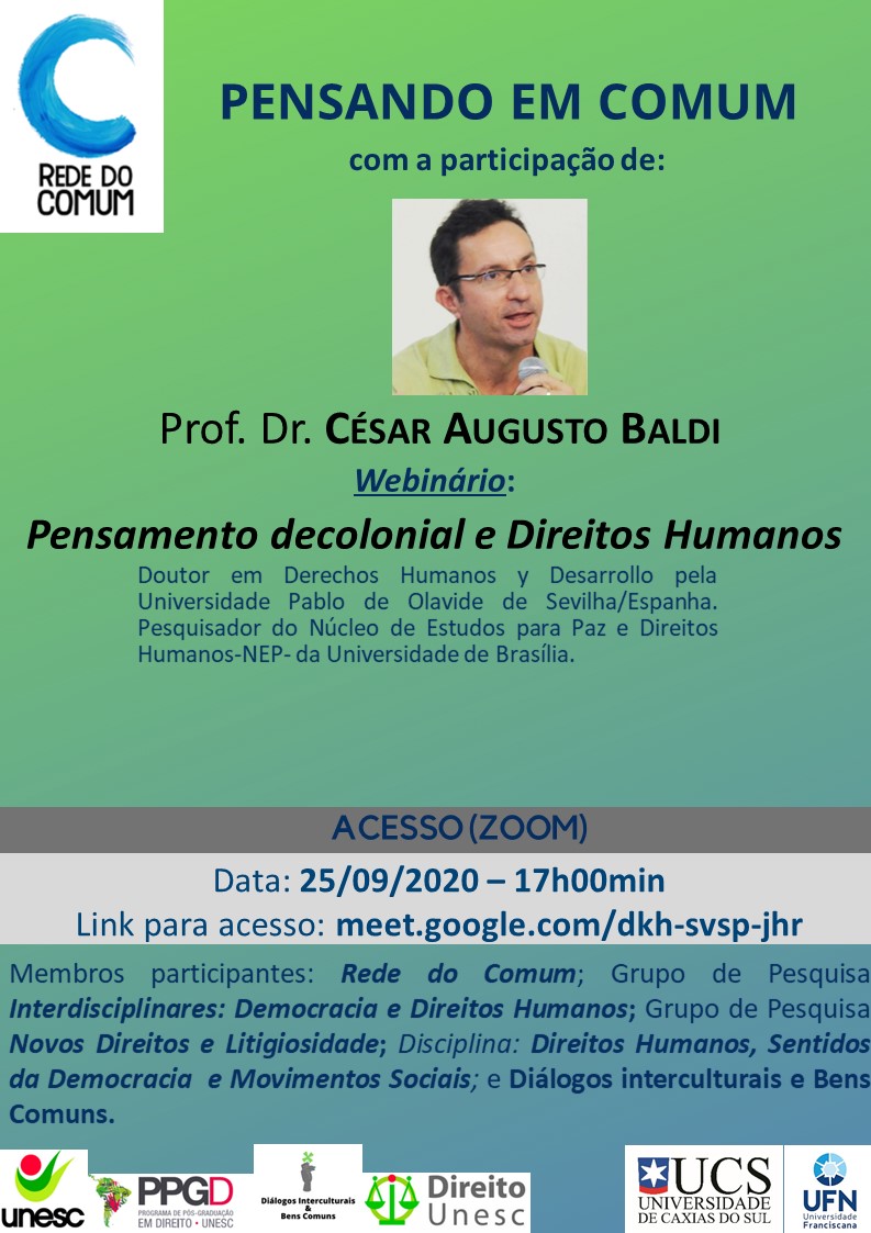 O professor e doutor Antonio Carlos Wolkmer, destacou a importância de se pensar os Direitos Humanos no atual contexto de pandemia como um conjunto de ações para transformação da realidade social, discutindo a falta de acesso à saúde, alimentação, moradia e principalmente à própria vida com dignidade. “O curso vai nos proporcionar esse cuidado pela vida, pela saúde na sua plenitude” ressaltou Wolkmer.