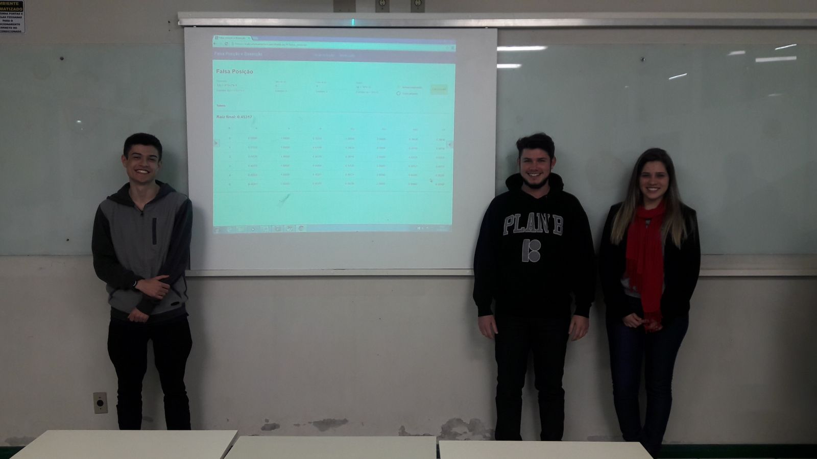 Tradicionalmente os alunos da quarta fase do curso de Ciência da Computação da Universidade do Extremo Sul Catarinense tem realizado projetos interdisciplinares contemplando diversas disciplinas. Neste primeiro semestre de 2016 foi realizado um projeto interdisciplinar que envolveu as disciplinas de Estruturas de Dados II, Análise de Algoritmos e Cálculo Numérico. O objetivo foi o de realizar a implementação de métodos matemáticos para a resolução numérica de equações algébricas e transcendentais. Os métodos eleitos foram o da bissecção e falsa posição, que são métodos iterativos, em que o usuário pode acompanhar a resolução da equação passo a passo conforme as implementações realizadas. Os projeto contaram com os professores Gilberto Vieira da Silva (Estruturas de Dados), Paulo João Martins (Análise de Algoritmo) e Kristian Madeira (Cálculo Numérico). Os projetos interdisciplinares levam os alunos a compreenderem a integração do conhecimento entre diversas disciplinas para que possam resolver determinado problema. Este é um ponto de destaque do curso de Ciência da Computação da UNESC, afirma o professor orientador Dr. Kristian Madeira.