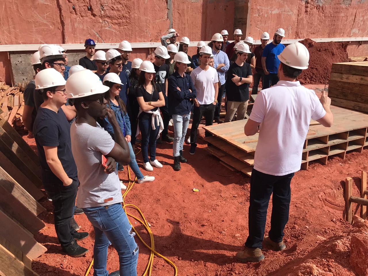 Encerrando o dia de aprendizados, os alunos visitaram uma edificação em execução no bairro Córrego Grande, da construtora Dimas, onde puderam visualizar o funcionamento de planejamento e controle de obras através de software no canteiro de obras, com muitas ferramentas tecnológicas auxiliando na melhoria e no controle da execução.
