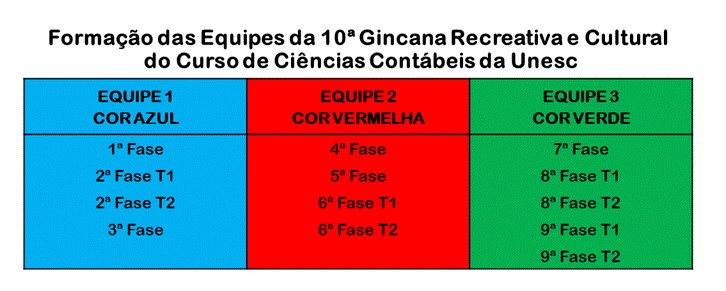 Sorteio Equipes 10ª Gincana Recreativa e Cultural do Curso de Ciências Contábeis da Unesc