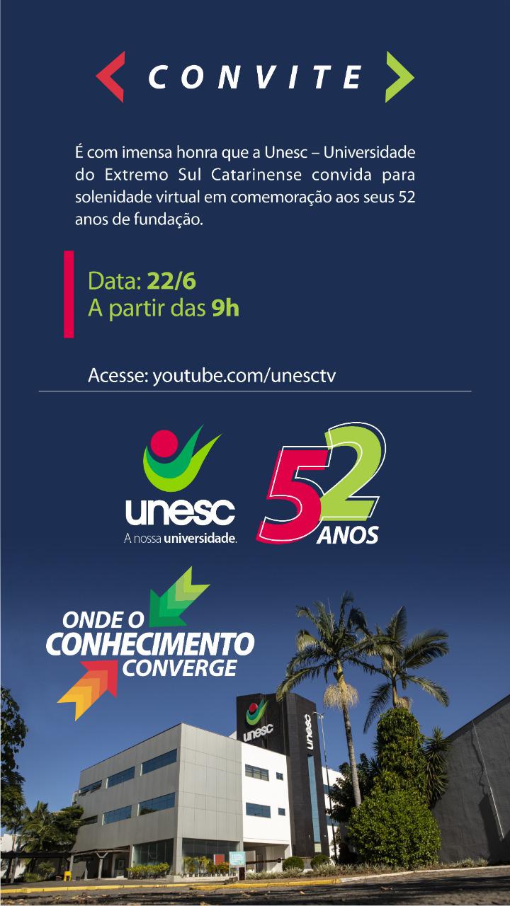 ▶️ Acesse aqui a programação completa: materiais.unesc.net/52anos. materiais.unesc.net/52anos.