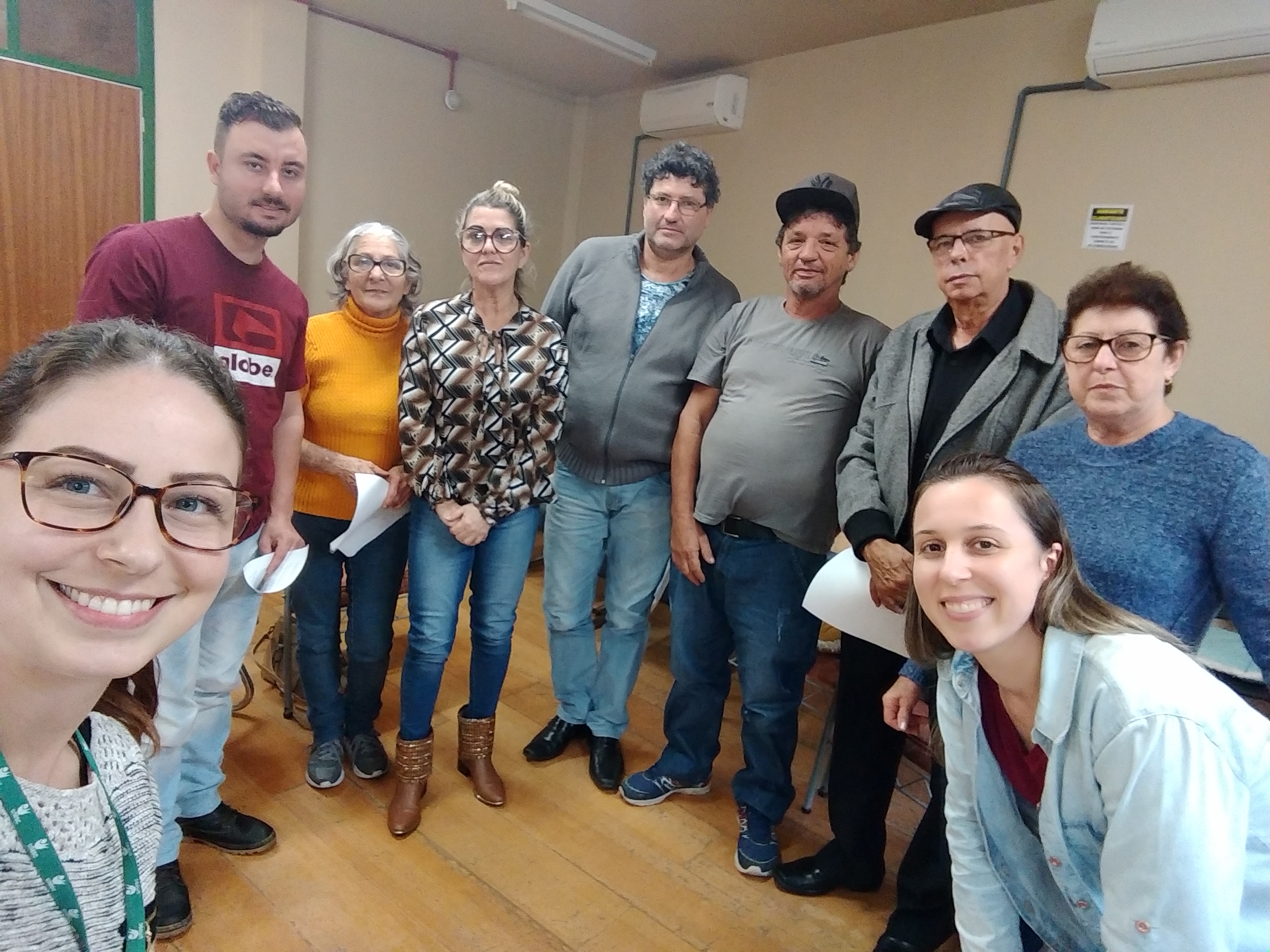 Na foto a Psicóloga Tamires Rosa Pacheco R1 do Programa de Residência Multiprofissional em Saúde Mental e Atenção Psicossocial da Universidade do Extremo Sul Catarinense (UNESC), também fazem parte da foto os participantes do Grupo Cuidado do Cuidador do Centro Especializado em Reabilitação (CER II – UNESC). Este grupo foi elaborado com auxílio de estagiárias de Psicologia Social do curso de graduação em Psicologia da UNESC.