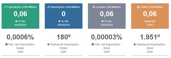 No ano de 2020 a cidade de Santa Rosa do Sul concretizou poucas negociações com o mercado internacional.