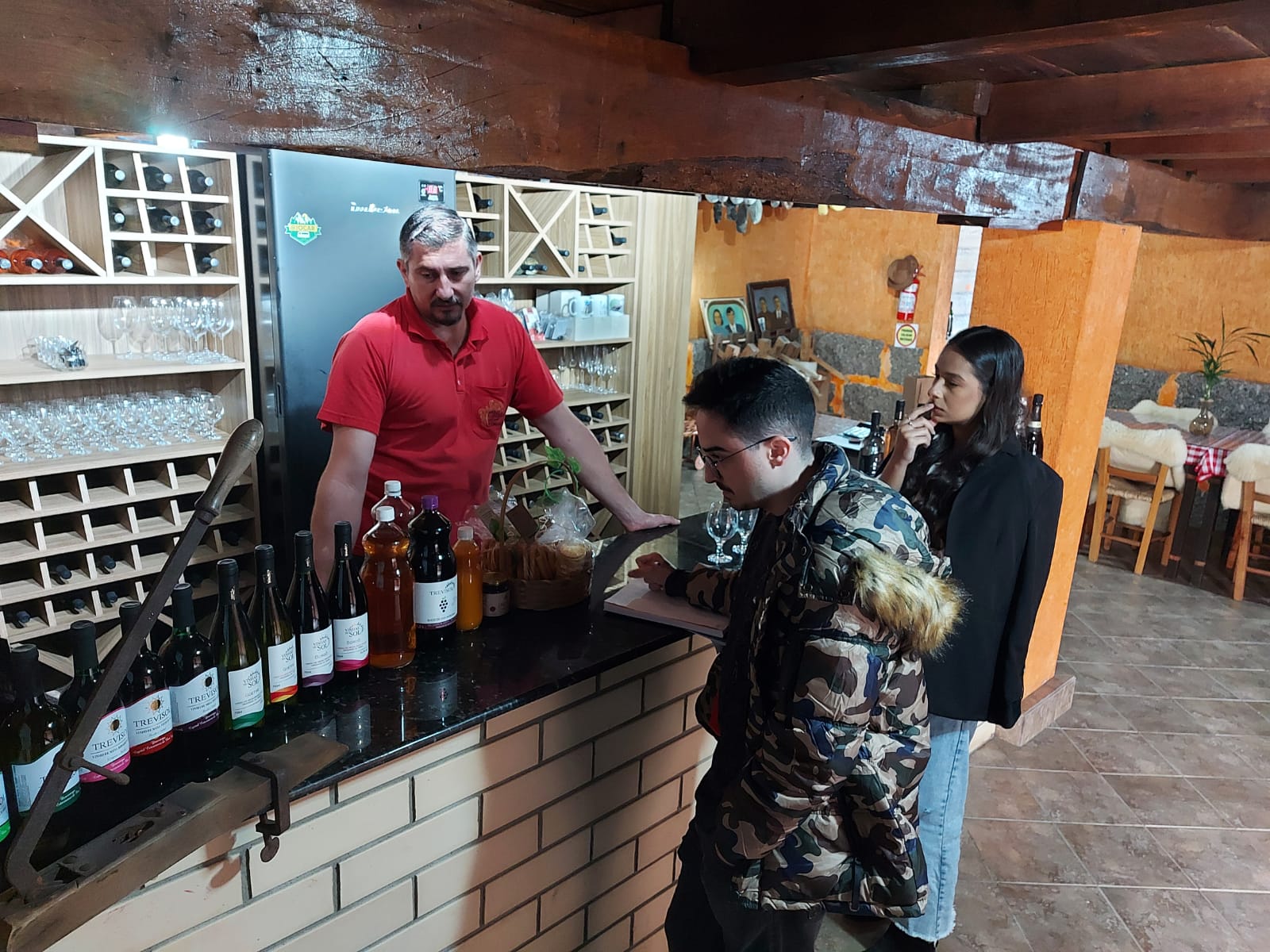Na manhã desta quinta-feira (31.03.2022) o grupo de extensionistas do Núcleo de Estudos Gestão e Estratégia em Negócios Internacionais - GENINT e acadêmicos do curso de Administração-Comércio Exterior/UNESC, acompanhados pelo Prof. Msc. Júlio César Zilli, estiveram em visíta técnica na Vinícola Trevisol em Urussanga. Na oportunidade foi possível compreender toda a história do empreendimento, bem com o processo produtivo de vinho e suco.
