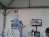 A psicóloga Cenita Borges palestrando na Semana do Cliente, na Praça Nereu Ramos.