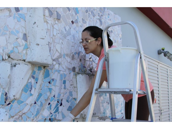 Estudantes de Artes Visuais fazem manutenção de mosaico na Universidade
