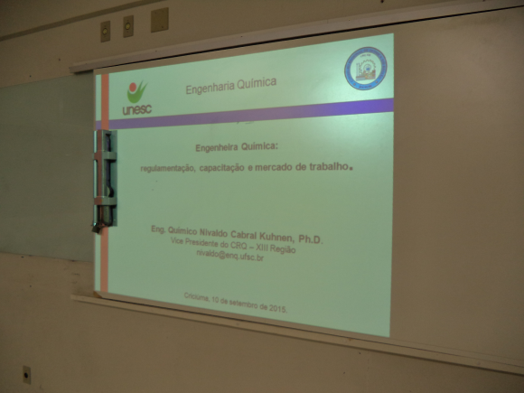 Acadêmicos da 1ª Fase do Curso de Engenharia Química e alunos do terceirão de colégios de Criciúma recebem palestra com o Vice Presidente do CRQ - Conselho Regional de Química da XIII região professor, Dr.Nivaldo Cabral Kuhnen.