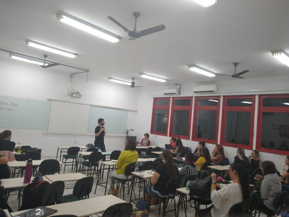 Professor André Cechinel conversa com acadêmicas sobre a Escrita Acadêmica