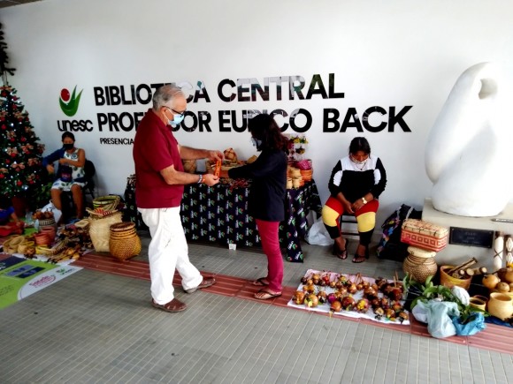 Indígenas expõem artesanatos na Feira Solidária da Unesc