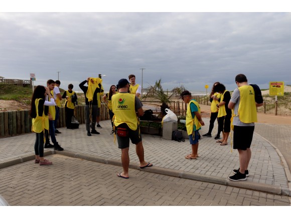 Acadêmicos e professores da Unesc recolhem 26 kg de lixo na orla do Balneário Rincão