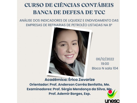 BANCAS DE TCC DO CURSO DE CIÊNCIAS CONTÁBEIS DA UNESC 2022.2