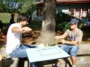 Tijolos maciços, barro, água e açúcar juntos viram forno de pizza na Unesc