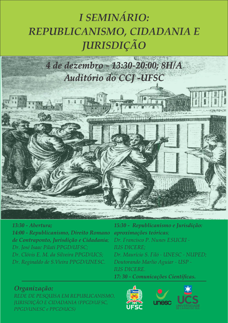 I Seminário: Republicanismo, Cidadania e Jurisdição - REDE (PPGD/UNESC- PPGD/UFSC-PPGD/UCS)