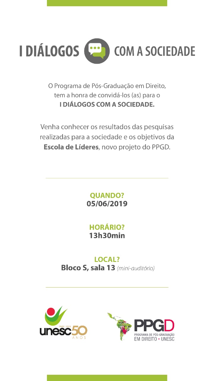 O Programa de Pós-Graduação em Direito tem a honra de convidar a comunidade acadêmica para a Defesa Pública de Dissertação abaixo relacionada: