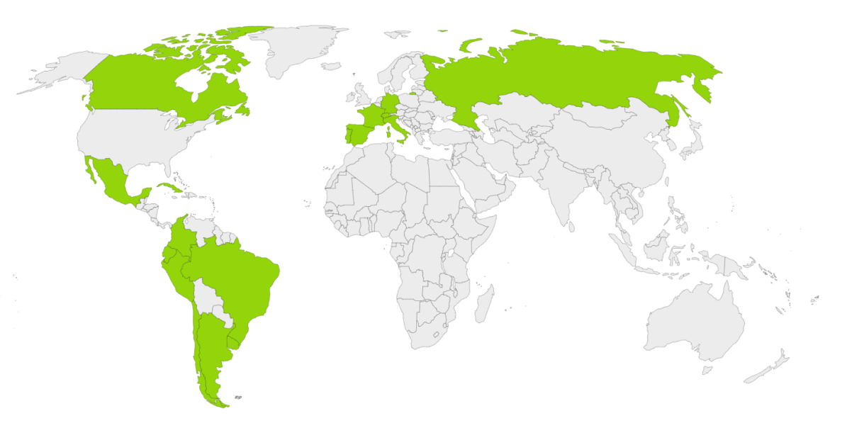 Angola: Instituto Superior Politécnico do HuamboSonangol; Argentina:Universidad de CienciasEmpresariales y Sociales, Universidad de la Matanza, Universidad Nacional do Rosário, Universidad Nacional de Avellaneda, Universidad de San Pablo; Áustria:MCI Manegement Center Innsbruck; Canadá:Quinsam Coal Corporation, University of Waterloo, University of Prince Edward Island; Chile: Universidad del Pacífico, Universidad de los Lagos; França, Université Panthéon-Assas Paris II, Universidade Rennes I; Espanha: Universidad de Santiago de Compostela, Università de León, Universidade Carlos III de Madrid, Universidade Autónoma de Barcelona; Estados Unidos: Claflin University, University of Texas Health Science Center at Houston; Irlanda: Institute of Technology Tralee; Itália: Università degli Studi di Modena e Reggio Emilia, Università per Stranieri di Perugia, Consiglio Nazionale Delle Ricerche, Università degli Studi di Firenze; México: Centro de Investigación en Química Aplicada – CIQA, Universidad Veracruzana; Portugal: Hospital Garcia de Orta, Universidade de Coimbra, Universidade do Algarve, Instituto Politécnico de Tomar, Universidade do Porto, Universidade de Évora, Universidade de Lisboa – ISEG, Escola Superior de Enfermagem da Cruz Vermelha Portuguesa de Oliveira de Azeméis, AURN (Associação das Universidades da Região Norte); Perú: Universidad Científica del Sur, Universidad Nacional de la Selva; Polônia: Jesuit University Ignatianum; República Checa: Jan Evangelista Purkyne University; Rússia: Nosov Magnitogorsk State Technical University; Uruguai: Universidad de la República.